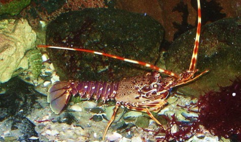 Die Europäische Languste Palinurus elephas kommt im Mittelmeer, um England und Irland herum und im Norden vor der Küste Norwegens auf felsigen Substraten in Tiefen zwischen 50 und 100 Metern vor. Sie erreicht ohne Fühler Längen von etwa 50 Zentimetern und kann bis zu vier Kilogramm Gewicht erreichen. Die Europäische Languste hat somit unter Ausnutzung des warmen Golfstroms eines der weltweit betrachtet nördlichsten Vorkommen von Vertretern ihrer Familie realisiert. An deutschen Küsten kommt sie nicht vor. Auf den Fotos kann man sehen, warum die Engländer Langusten als "spiny lobster", also als stacheligen Hummer bezeichnen. Aufgrund dieser starken Bedornung fassen sowohl Feinkosthändler als auch Fischer Langusten mit besonders dicken Gummihandschuhen an. Langusten besitzen keine starken Scheren wie der Hummer, sondern brechen Muscheln, Seeigel und andere Beutetiere mit ihren spitzen Klauen auf. Lediglich die Weibchen besitzen am letzten Beinpaar kleine Scheren, mit denen sie die Eier, die sie unter dem Abdomen tragen, pflegen. Aus diesen Eiern schlüpfen nach etwa einem halben Jahr kleine Phyllosoma-Larven, die mindestens zwei Monate im Plankton treiben, ehe sie sich in kleine fertige Langusten verwandeln. Diese Phyllosoma-Larven können strömungsabhängig auch längere Zeit im Phyllosoma-Stadium verharren; so wurde beispielsweise nachgewiesen, dass die Larve der Neuseeländischen Languste Jasus edwardsii bis zu 2 Jahre lang im Plankton driften kann. Dieses hängt damit zusammen, dass Meeresströmungen die Langustenbrut nicht immer sofort in die Nähe der Küste befördern, die Langusten aber auf die felsigen Küstenhabitate angewiesen sind. Die Europäische Languste ist leider genau wie der Europäische Hummer in Deutschland - wenn überhaupt - nur zu extrem hohen Preisen als Lebendware für Feinschmecker zu bekommen, was vor allem mit dem allgemeinen Raubbau an den Langustenbeständen zusammenhängt. Ich konnte mit eigenen Augen sehen, dass etwa in Griechenland auch untermassige Langusten in die Kochtöpfe wandern. Langusten können mit Stachelhäutern zusammen gepflegt werden, wenn man die Langusten ausreichend füttert. Zur Aquarienhaltung von Langusten sei angemerkt, dass sie empfindlich gegen zu hohe Temperaturen sind und daher eine besonders starke Wasserumwälzung benötigen. Auch in einem Langustenbecken müssen die Steinaufbauten fest montiert werden, damit die Tiere diese nicht zum Einsturz bringen können. Langusten können Röhrenwürmern, kleineren Krebsen und langsamen Fischen zum Verhängnis werden, weshalb man über die Vergesellschaftung der Tiere gut nachdenken sollte. Andererseits vertilgen Langusten auch lästige Borstenwürmer und helfen so, ein Überhandnehmen der Würmer im Aquarium zu unterbinden. In der Natur marschieren Langusten zu bestimmten Jahreszeiten in riesigen Kolonnen, um sich fortzupflanzen. Dabei halten die Tiere mit ihren langen Fühlern Körperkontakt. Neuere Forschungen haben ergeben, dass sie sich dabei am Magnetfeld der Erde orientieren. Im Aquarium konnte ich auch beobachten, dass sie mit ihren langen Antennen kommunizieren! Obwohl Langusten als adulte Tiere eher Einzelgänger sind, stellen sie doch während ihrer Paarungszeit eindrucksvoll unter Beweis, dass sie auch soziales Verhalten zeigen können.