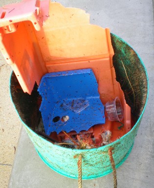Der Vollständigkeit halber sei hier noch ein neues Habitat in Kurzform beschrieben: Die Gemeine Müllbank. Hier lagern sich nicht nur Fischernetze, Nylonfäden, Taue und Fischkisten ab, sondern auch alle erdenklichen Arten sonstiger Abfälle. PVC-