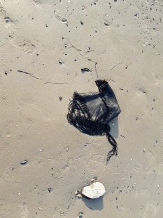 And finally, we would like to thank the Dutch crab fishermen for regularly emitting orange and blue nylon ropes into the North Sea. Without this regular input, it would be much more difficult to collect algae on the coast. It's just great how these nylon strips bundle the algae in a handy way. Ready for the algae collector to pick up. Many thanks for that! (And, of course, for every seabird, that dies in them and no longer disturbs us with its squawking. The whole coast is much quieter!) Thanks again!
