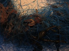 Und abschließend möchten wir uns noch sehr herzlich bei den niederländischen Krabbenfischern dafür bedanken, dass sie regelmäßig orangefarbene und blaue Nylonseile in die Nordsee emittieren. Ohne diesen regelmäßigen Input wäre es ja auch viel schwieriger, an der Küste Algen zu sammeln. Einfach super, wie diese Nylonstrippen die Algen gleich handlich zum Aufheben fertig für den Algensammler bündeln. Vielen Dank dafür! (Und natürlich auch für jeden darin verreckten Seevogel, der uns nicht mehr mit seinem Gekreische stört. Da ist die ganze Küste gleich viel ruhiger!) Danke nochmals!